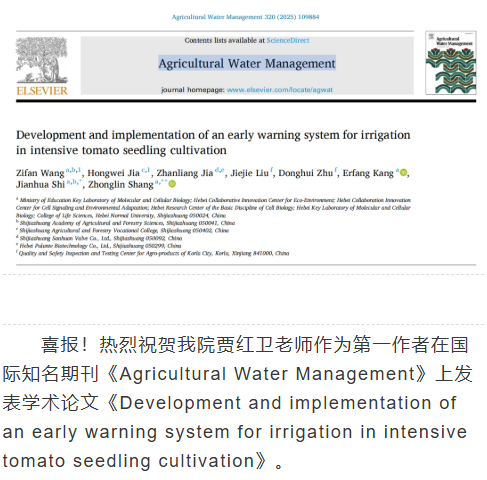 喜报|热烈祝贺我院贾红卫老师在国际知名期刊上发表学术论文